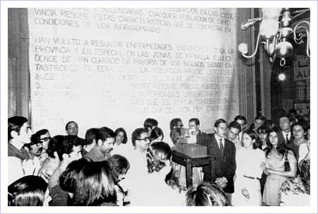 | Día de apertura de la muestra en salas de la CGTA. Confederación General del Trabajo de los Argentinos. 3 de noviembre de 1968.